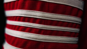 - The striping pattern on the Red Wings’ Centennial Jersey. (Credit: Detroit Red Wings)